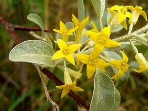 沙枣树,在植物学上属胡期胡颓子科胡颓子属,为落叶乔木。别名银柳,香柳,七里香。繁殖力、生命力很强,不似白杨的挺拔,也不似垂杨的婀娜,却有着坚贞不曲的品格,美而不柔的“风骨”。大多的沙枣树的杂乱枝条上都长着许多一厘米左右长的刺,细枝和叶上都披着一层灰白的鳞片,从春天到秋天那树叶总是一层灰蒙蒙的绿,少了盎然味道,多了几分沉寂,让人感觉到它的质朴和沧桑。风吹叶曳,枝条随摆,“勿与他花争妖娆,我自苍然傲沙荒‘’。