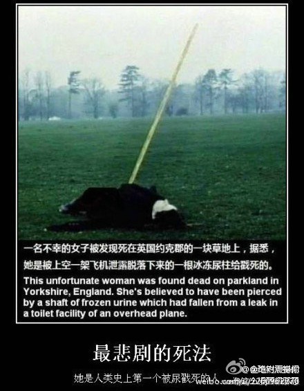 她是人类历史上第一个被尿戳死的人