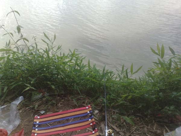 在网上买了一把与笔差不多一样大的鱼杆,星期天早上就兴冲冲的带着装备到河边去,并准备了A计划和B计划