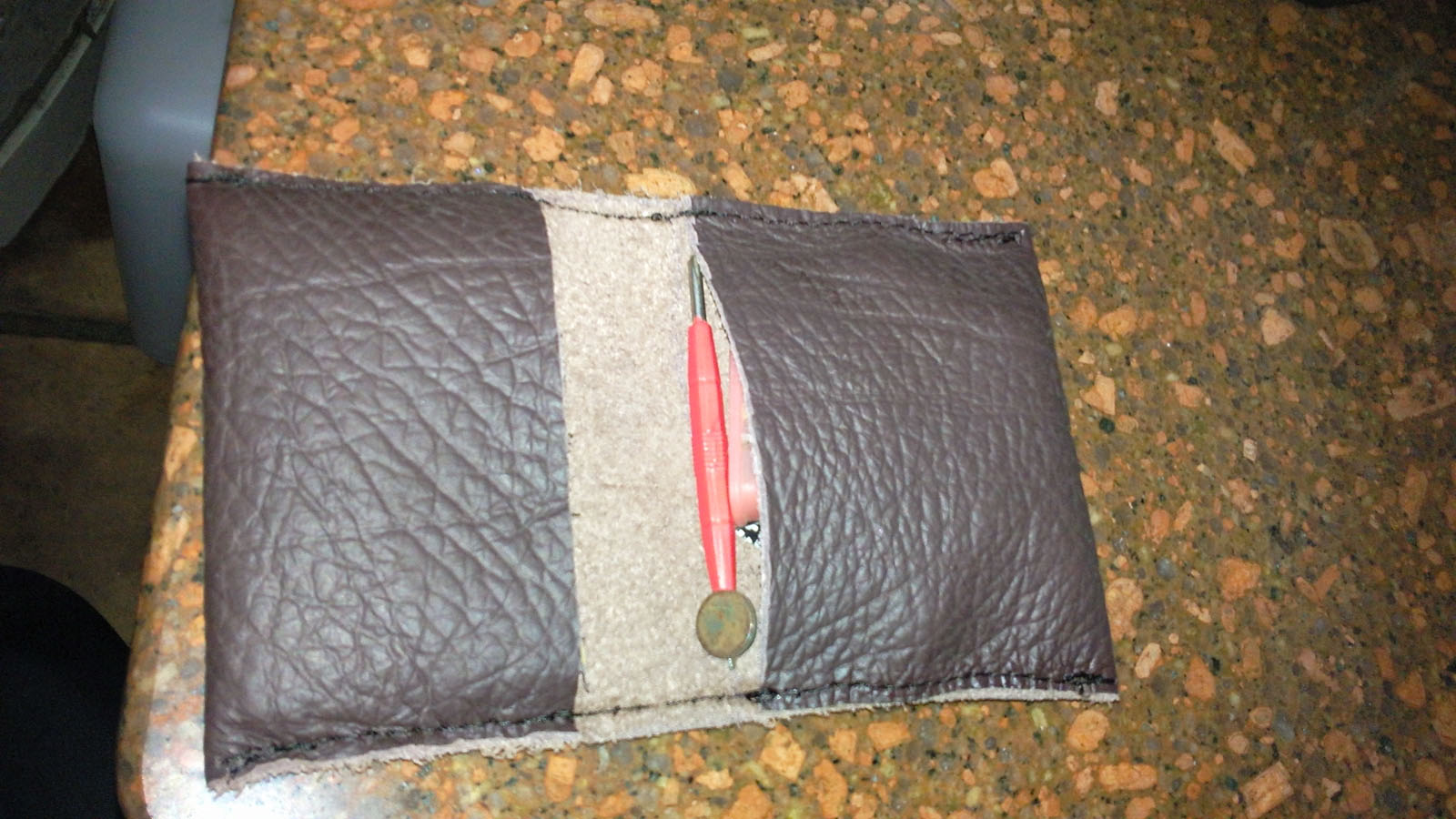 这个包跟了俺五年,由于皮不是很厚,被里面的工具磨破了,想在淘定上订一个,结果人家说DIY订制1400每个起步,呃,还是算了,自己去本地的皮鞋店买了张边角皮,20块
