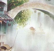 涟漪橹摇传水响,迷风朔月古桥沙。