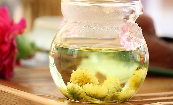 3)茶汤的颜色:经过开水冲泡的菊花茶水体清澈透明,茶香四溢。而品质不好的菊花茶,汤色浑浊不清。