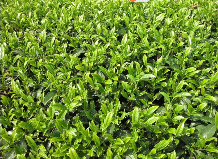 图示明前茶园(没有被采摘的痕迹,一枝一芽)