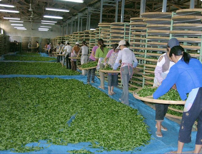 自然萎凋-将鲜叶均匀摊放于竹帘或竹筛上,置空气流通,阴凉干燥处进行。