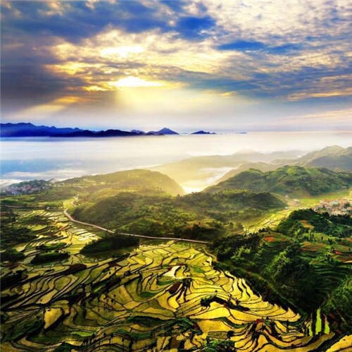 在很多人眼里农历五月的茗岙是最美的,因为注满水的农田在光线的折射下如同镜子一般明亮。但是小编觉得其实十月水稻成熟却还没有收割时的茗岙才是人间一大绝美之景。层层叠叠的金黄,在秋风的微拂中翻滚着浪花,空气中都洋溢着丰收的喜悦。