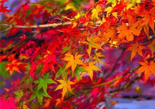 天平山的枫叶入秋经低温霜打后,叶色逐渐由青变黄、转橙、呈红、泛紫,往往一棵树上就五色并存,是名副其实的“五彩枫”。有的还会呈现出浅绛、金黄、橘黄、橙黄、橙红等美丽色彩,“似烧非烟火,如花不待春”的感觉油然而生。半山腰的望枫台是最佳观赏处。