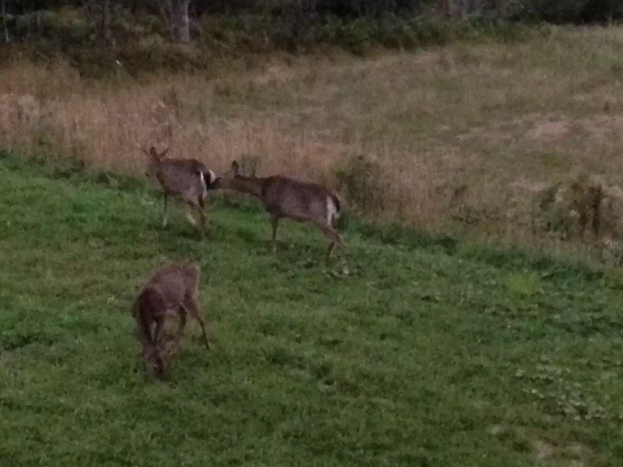 黄昏,小鹿如期到来,在后院里悠闲地漫步觅食,在我家蹭饭呢!