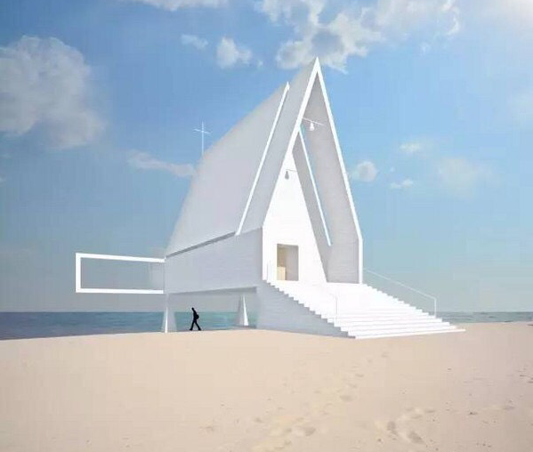 纯白色的教堂,一片异国风情,海边的孤独书屋,静静的站在那里,等待着我们的光临。