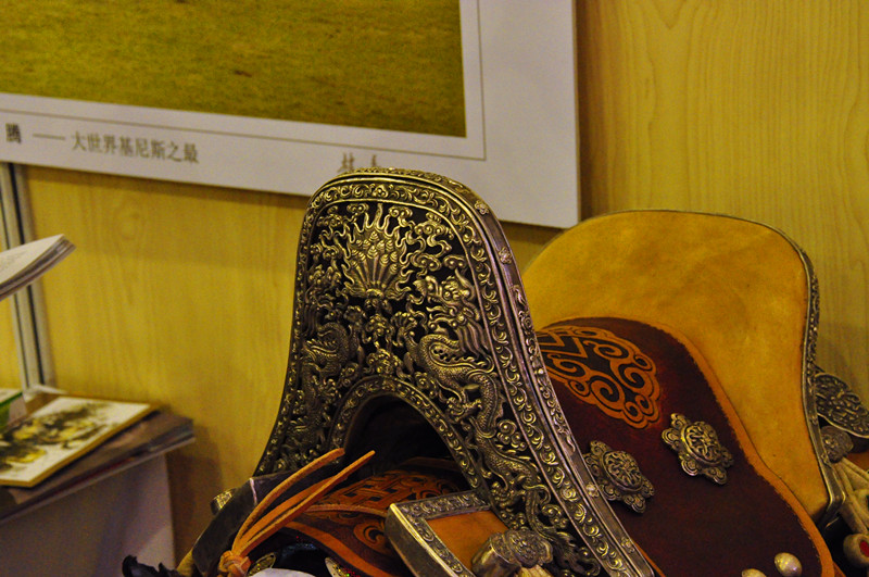 展区看到的马鞍,漂亮!拎起来才觉得沉得很