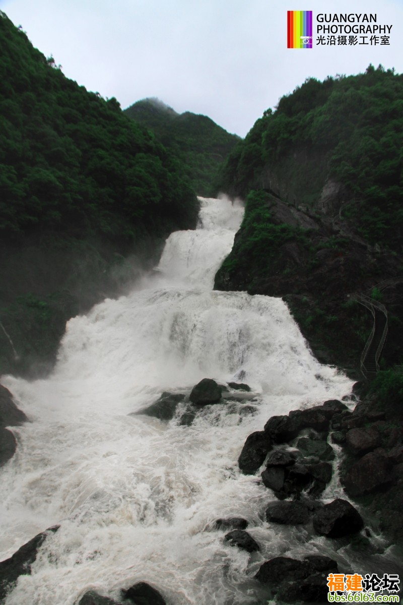 暴雨过后,周宁九龙漈水势纵穹天直下。草绿山青,惊涛怪石。