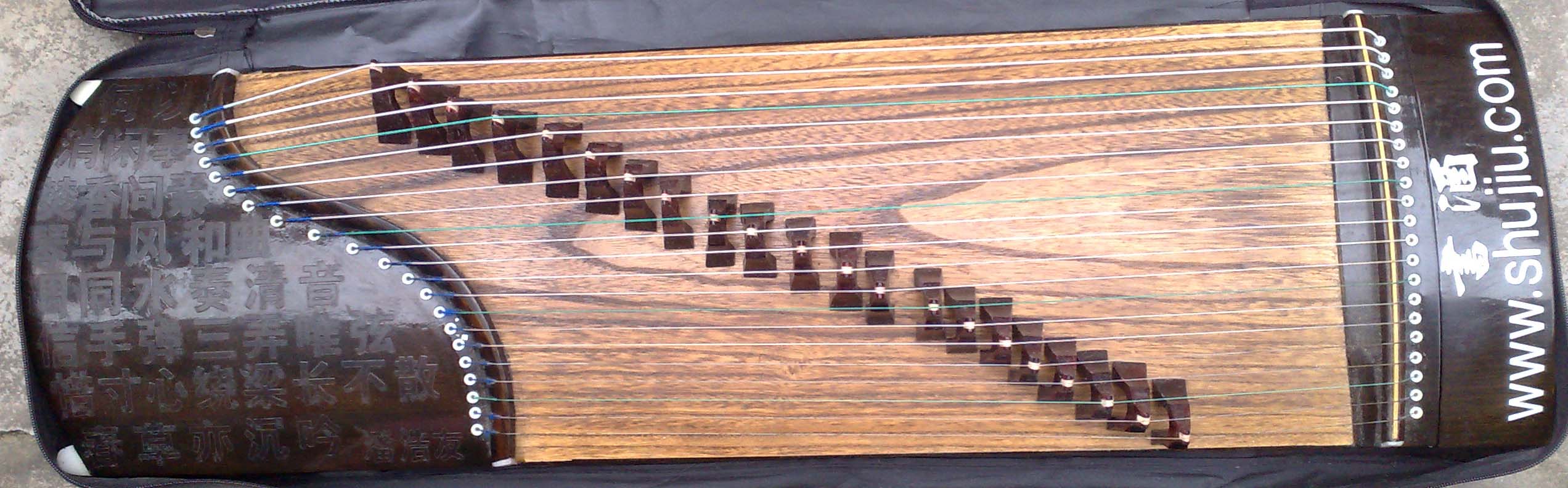 在网上找了很久,才找到一个能和生产小古筝的厂家联系的卖家,订了一把素面的,本来想刻字,可是拿回来一看,舍不得动刀子,没办法,只好用贴的,然后再油上一层油漆,还好做过几天油漆工