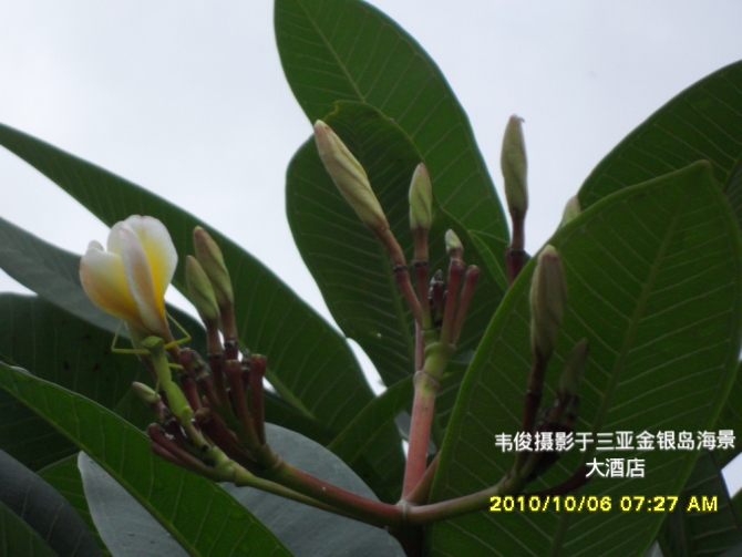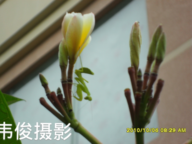 这是螳螂和鸡蛋花?第ー次见!很美