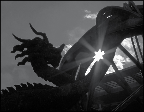 玻璃柜外的条状生物虔诚地听着、看着,有几条甚至扭动起来,学着盘成那圆形的样子。可是猫们洞开的瞳孔清晰地看到,玻璃柜里那条黄袍上绣着龙的地方,已经出现了许许多多细小的蛀孔。一些条状的生物正在玻璃柜子里无声无息地啮噬着这件已经褪色的袍子。虔诚的听众刚刚散去,慷慨激昂开导众生的那条也悄悄地从缝隙中挤进玻璃柜子,加入到吞噬的队伍里去了。