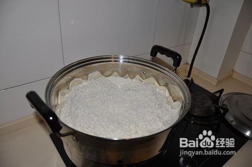 蒸煮。将玉米碎粒或糯米洗净,在水中浸泡4小时—6小时,待吸水膨胀后,捞起沥干,置于大饭锅或蒸笼内,以100℃蒸至玉米碎粒或糯米无硬心时,取出铺摊于竹席上,晾凉至40℃—50℃。