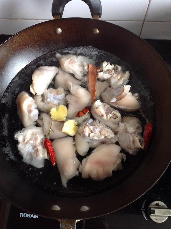 猪蹄洗净,焯水备用