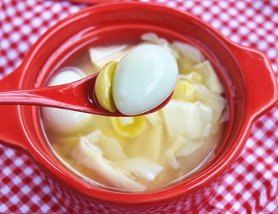 推荐理由:广东很多家庭都喜欢做它,不过做法却有好几种,有些人喜欢只用鹑鹌蛋跟白果煲成糖水,有些中喜欢在当中加入腐竹,也有些人喜欢加入蛋花..
