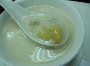 薏米60克,白果(去壳)8-12枚,同煮汤,用适量白糖(或冰糖)调味食用。有健脾除湿,清热排脓作用。