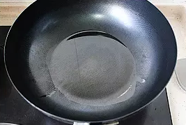 3、炒锅中放一大勺油,放入花生,然后开小火,不断翻炒花生,等到花生颜色变红,即可捞出放凉