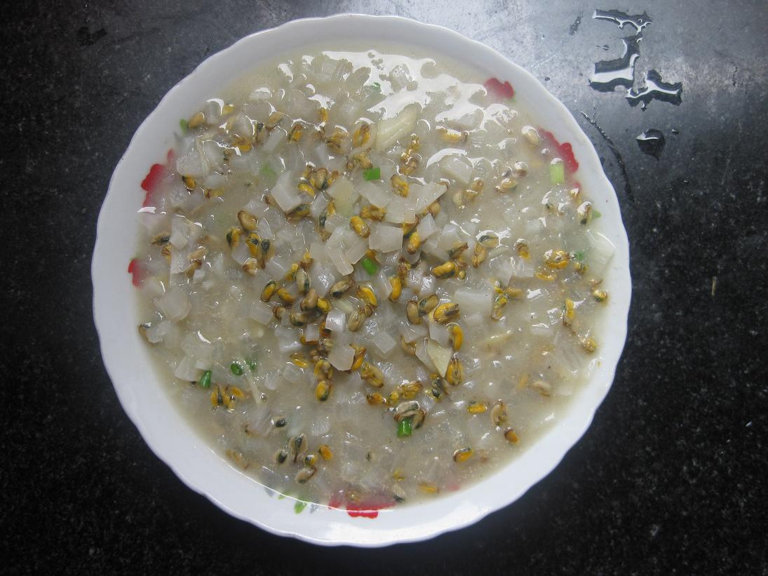 备料:泥肉(方言)是一种海里的小贝壳剔出来的肉