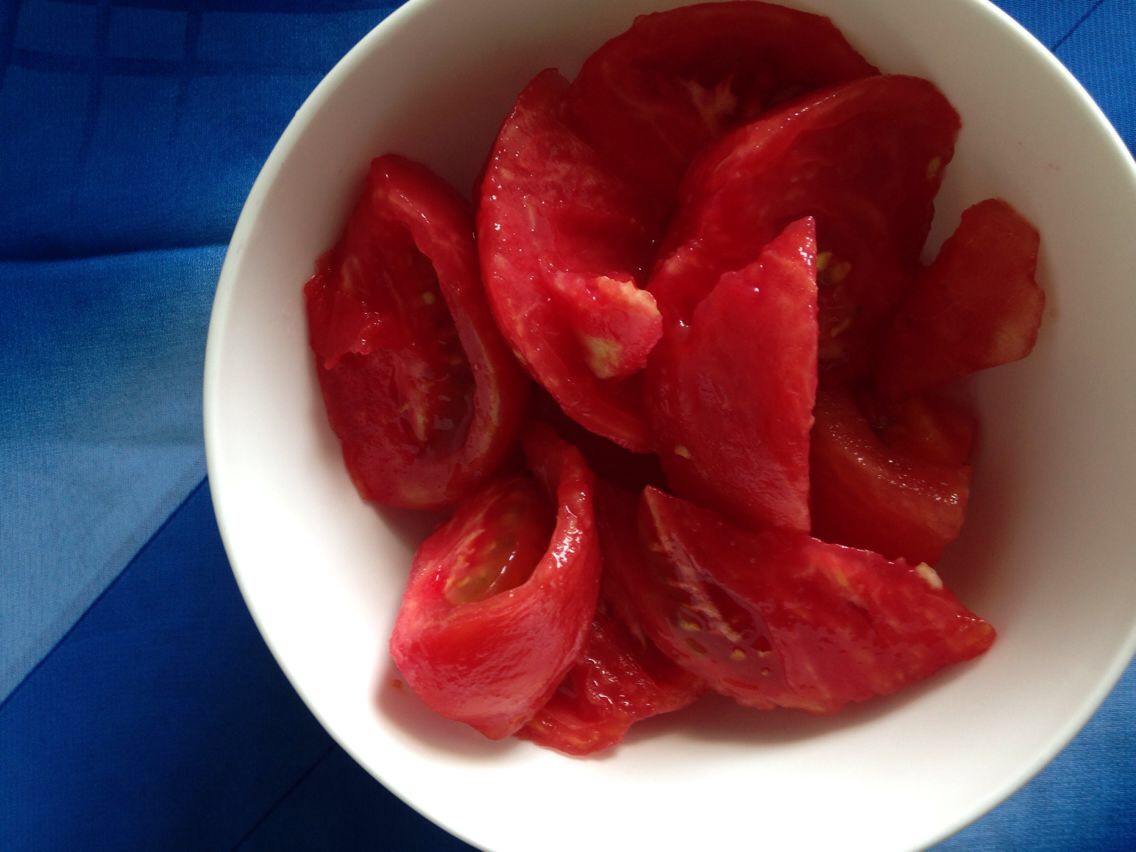 1)将西红柿去皮切块,黑木耳,黄花菜,香菇泡发洗净