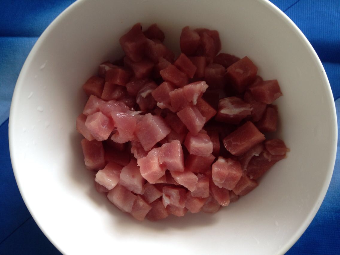 3)锅内放底油,放入一粒八角少许葱花,再把肉放进锅里,加入甜面酱炒出香味,直到把肉炒熟酱也就炸好了。