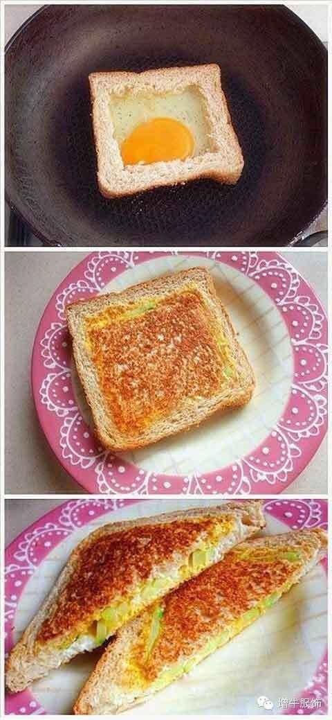 把面包中间切掉,打入蛋,等稍微凝固一些以后加入你要的东西(比如黄瓜,芝士片,火腿等)看鸡蛋差不多 ...