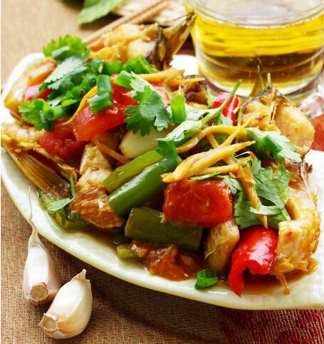 1)鳕鱼洗净、切块,姜蒜去皮,辣椒洗净