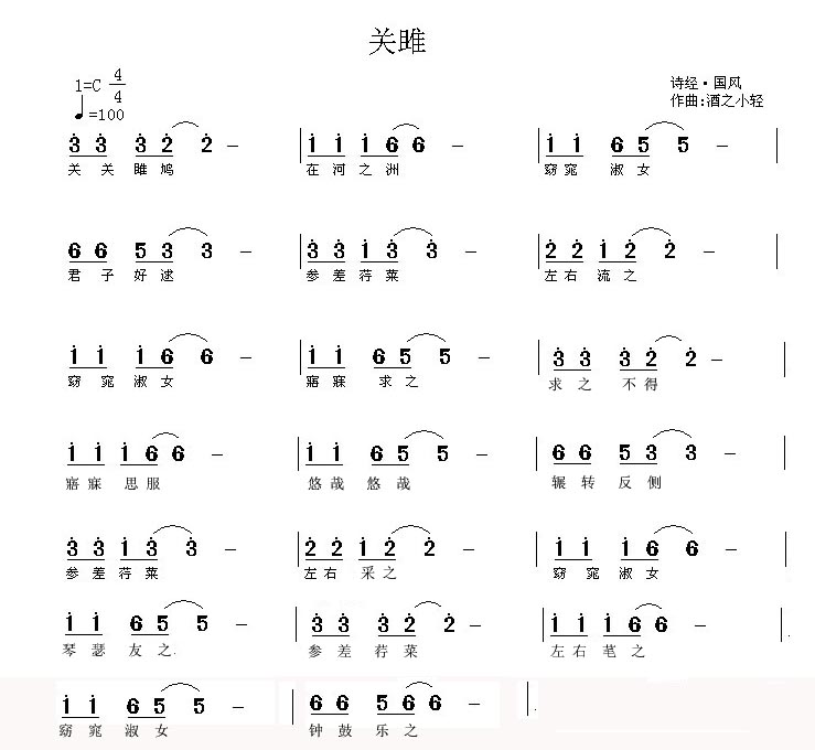 » 刚谱的曲,诗经·国风:关睢