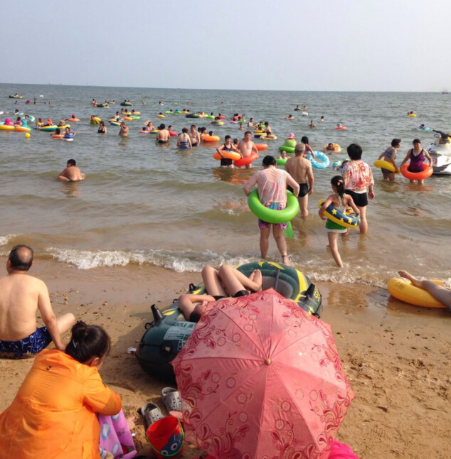 上午十点,人们已经等不及,冲向海里,海水冰凉