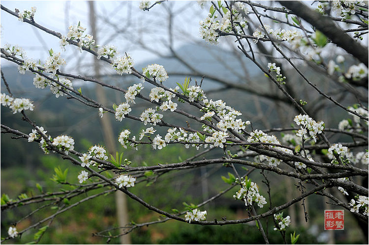 李,又名郁李、玉梅,古称嘉庆子,为落叶乔木,花期为4~5月,白花,虽小而繁茂,素雅清新。