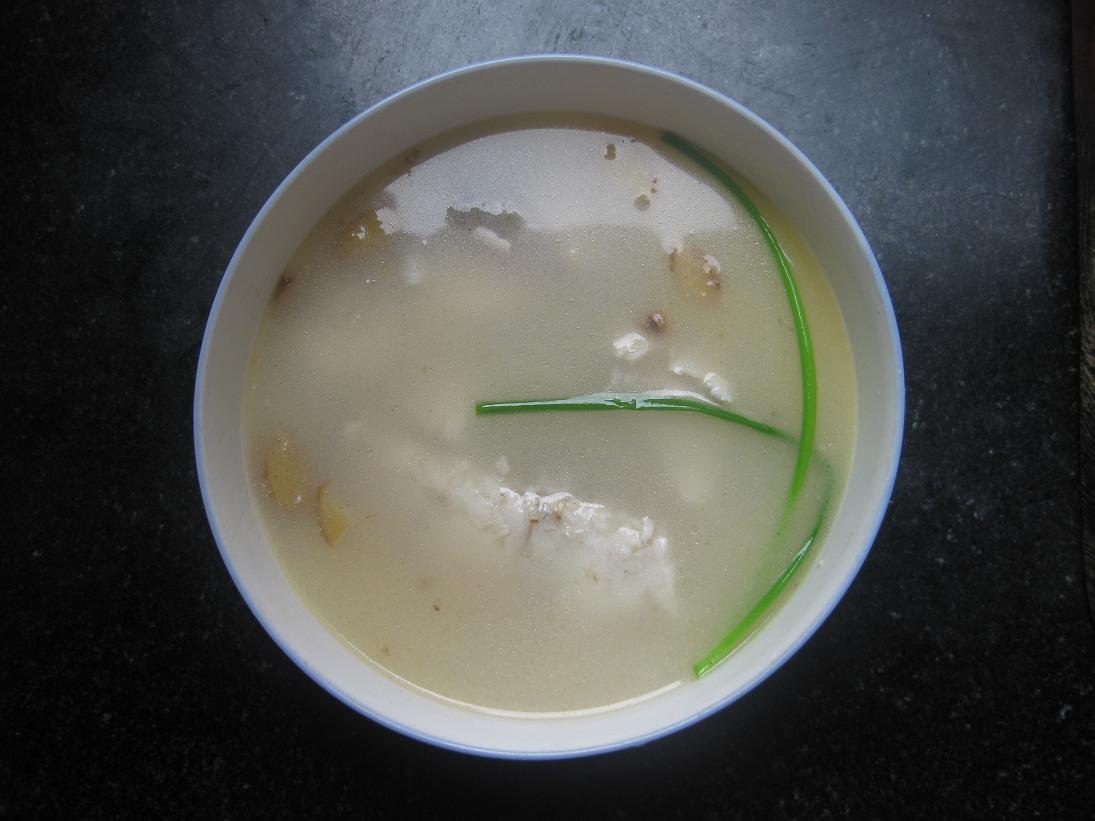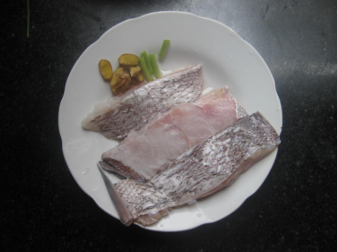 准备:海鱼处理干净(鱼鳞很大很硬,用刀背去鳞),切一段切成三块就够煮一大碗汤