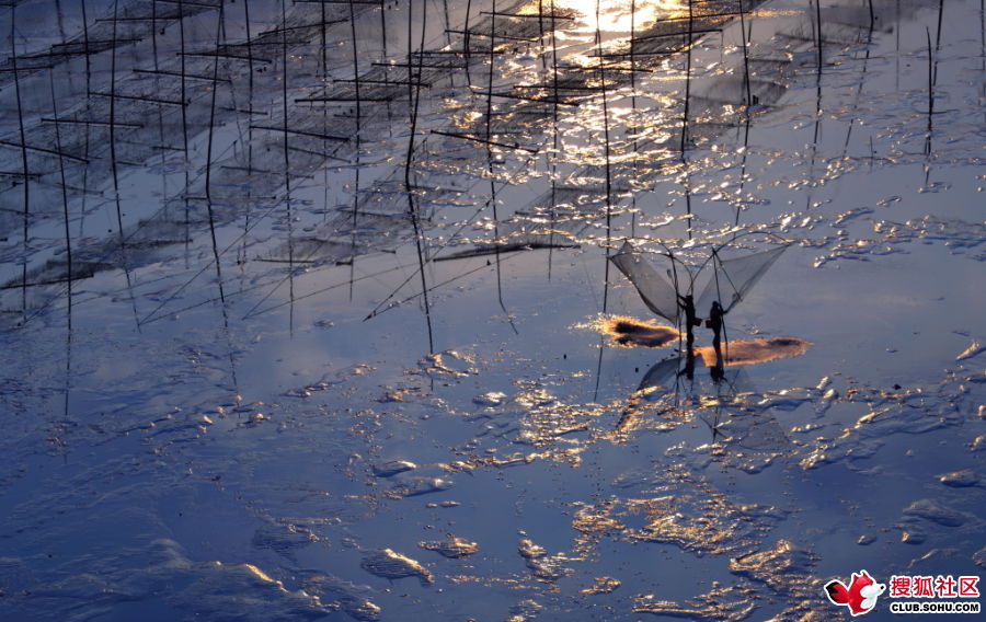 3、要讲究参照物,拍摄滩涂一定要有参照物或者是活物,比如渔民、白鹭等,否则光影色彩再好的片子也没有灵性。
