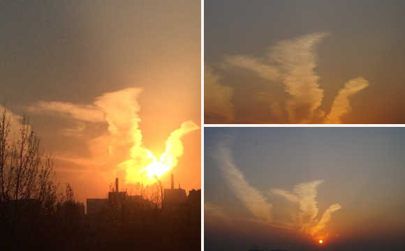 12月23日傍晚,北京西部天空呈现奇异而美丽的晚霞,天空的彩云宛若一只巨大的凤凰遨游天际,美不胜收。