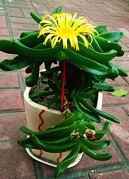 仙人掌类与菊花长一块?厉害。。。确定不是假花?那一条红色是啥东东?