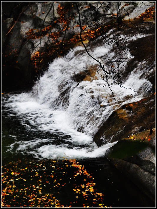奔流的山泉水,带着片片落叶而去