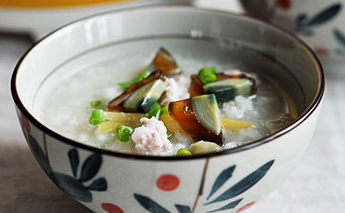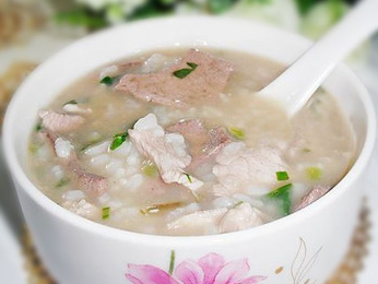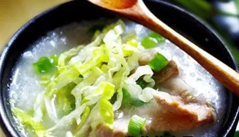 原料:猪肝、瘦肉、粳米、香葱、冬菜、胡椒粉、油、精盐、鸡精
