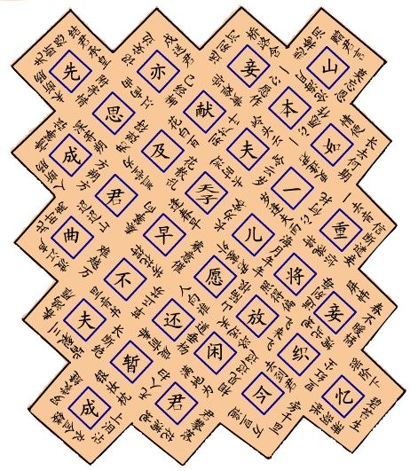 此诗小字共二百四十字,采用回环旋读,从喊字开始,可读成七言三十四句、五言二