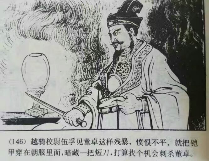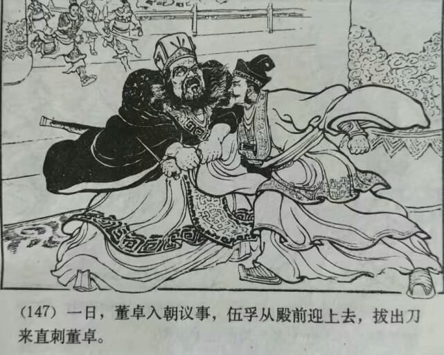 伍孚趁机抽出利刃向董卓刺去,
