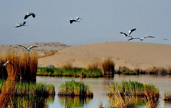 宁夏沙湖中国观鸟的首选之地。每年有各种各样的迁徙鸟类在宁夏这片湿地栖息,数量多达 100 万只。鸟类栖息的时间段分布为 4-5 月和 9-10 月。在这片 80 平方千米的广阔地域上,沙漠,湖水和芦苇荡相互交织,形成了独特的自然景观沙湖。门票:11 月 60 元 / 人,其余时间 80 元 / 人。沙湖位于银川市北侧 56km 处。每天有班车往返于沙湖和银川市北门客运站。