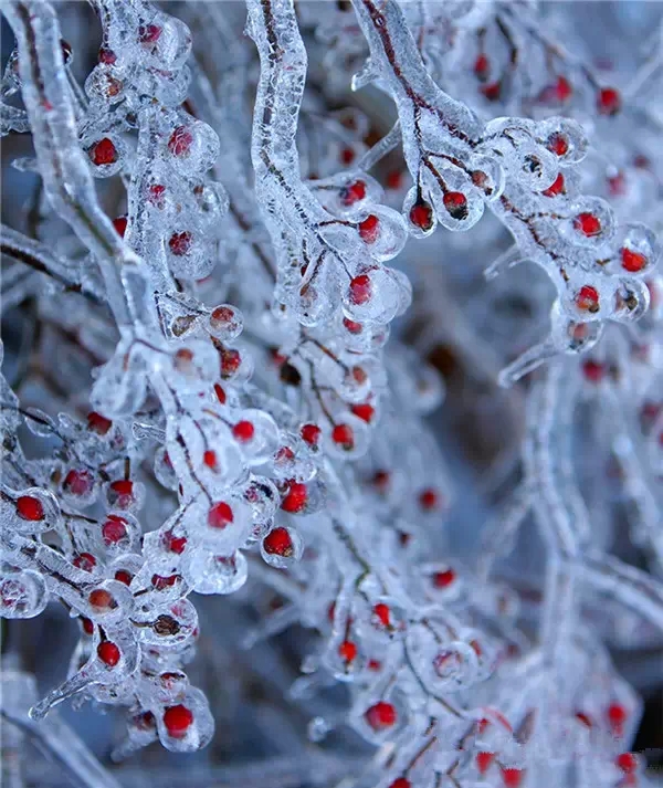 冻雨后,水被凝固在叶面上形成的冰叶。。。