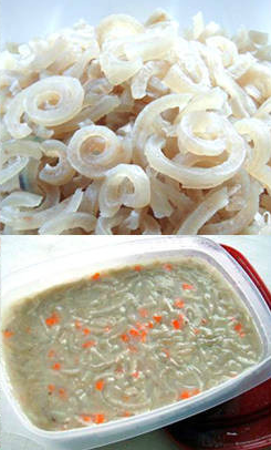 3、将处理好的猪皮切成小丝(如右图);