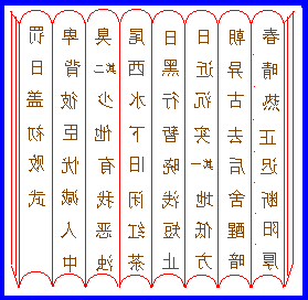 图的读法是:图中的字都是反字,意亦反读。如“春”字读成“秋”字,“晴”子读成“雨”字,其余类推。全图可读成五言七绝三首: