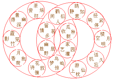 图包括上下两环,各藏七律诗一首。每句的末尾三个字,均为句首前三字的倒序。上环一首从“幽居”读起,下环一首从“瓜种”读起,向顺方向读诵。