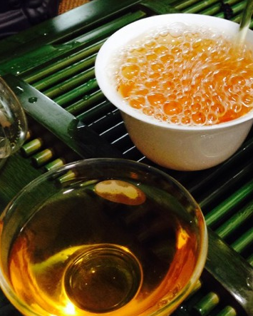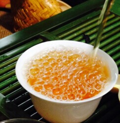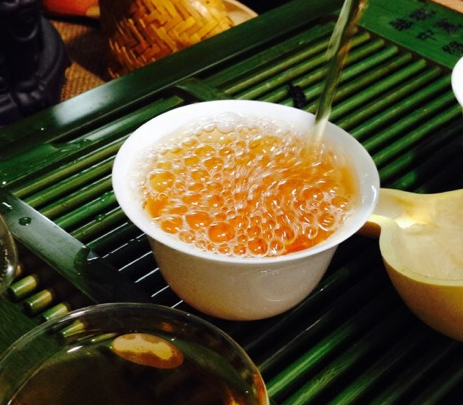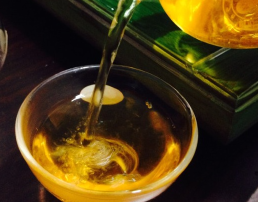 茶汤呈琥珀色,入口微甜,有一股淡淡的果香味,没有一点苦涩的味道,茶汤滑爽,唇齿留香,且回味无穷。