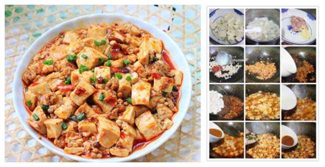 做法:1)锅内热油,放入猪绞肉小火煸炒。2)至猪肉出油脂时,放入姜、蒜、葱花、泡椒炒香。3)注入清水或高汤半杯。4)加入所有调味料,及切块豆腐。5)中火煮开后,转小火煮至汤汁快收干时,加入水淀粉。6)至汤汁浓稠时洒上葱花即可。