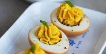 1. 将鸡蛋煮熟捞出浸冷水,剥壳,三七分,七分处捞去蛋黄。