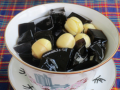 推荐理由:用现成的龟苓膏,把莲子煮熟了加入切小块龟苓膏一起就行,加入适量的蜂蜜提味,刚刚好。