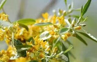沙枣树,是一种南方人少有见闻的花树,是北方特有的植物。在北方的广袤土地上,在春天的季节里,沙枣花却摇曳生姿,香飘万里。沙枣树叶间结满了星星点点的小花苞,绿色的蒂把上托着银色的米粒般大小的花蕊,一夜之间树干上爬满了一串串象风铃般金黄色的花,朴素而安静地悬在枝头,可爱却无娇柔作态。沙枣花的花朵极小,淡淡的黄色花蕊如小米粒大,凑近了仔细瞧,方可分出一瓣一瓣的浅浅的黄白色,虽比不得高贵花种的艳丽,却有着独有的淡雅。每年到了五月份,沙枣树满树开出一排排黄色的小花朵,让人们那么强烈地感觉到它的存在,在这个时候也是她最迷人的时候。沙枣花开得总是那么整齐,一枝上都挂满了沙枣花,一串一串的,金黄色的小小花朵,花朵虽小,可它的香味很浓。一旦开放,香溢旷野,田垄阡陌无处不发着它的魂灵,远在百米之外,沙枣花香气就能钻入鼻翼,香沁心脾。“沿鼻半日不走,进肺如若饮酒,浸润本就微醉的心情‘’。
