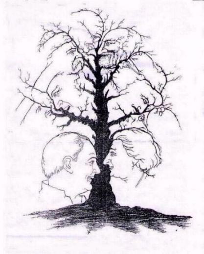 我能一眼看出图中的树下有一男一女两个头像!呵呵,没错。再仔细看看到底有几个人?