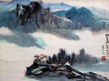 这据说是一幅民间珍藏的山水画,是用扫描扫上来滴,哪哪,上面还有一条很明显的折痕,可能是出自名家之手(这条折痕是出自名家之手?)